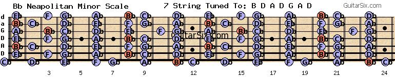 d-a-d-g-a-d bb neapolitan minor scale for guitar