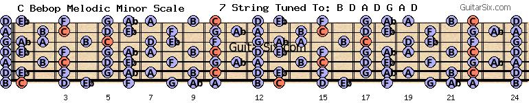 d-a-d-g-a-d c bebop melodic minor scale for guitar