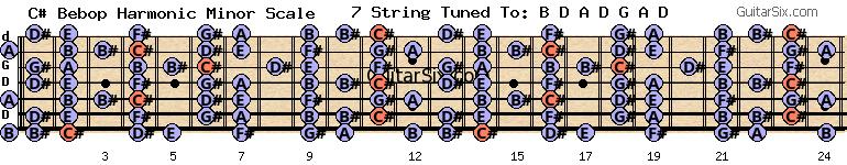 d-a-d-g-a-d c# bebop harmonic minor scale for guitar
