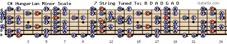 d-a-d-g-a-d c# hungarian minor scale for guitar