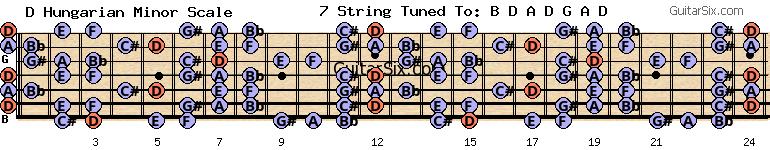 d-a-d-g-a-d d hungarian minor scale for guitar