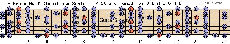 d-a-d-g-a-d e bebop half diminished scale for guitar