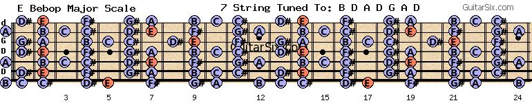 d-a-d-g-a-d e bebop major scale for guitar