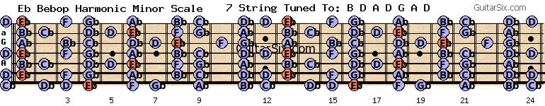 d-a-d-g-a-d eb bebop harmonic minor scale for guitar