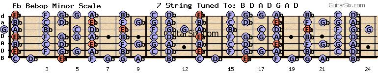 d-a-d-g-a-d eb bebop minor scale for guitar