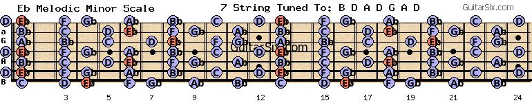 d-a-d-g-a-d eb melodic minor scale for guitar