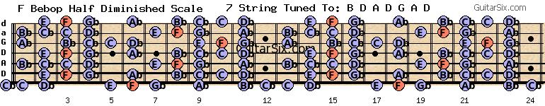 d-a-d-g-a-d f bebop half diminished scale for guitar