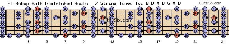 d-a-d-g-a-d f# bebop half diminished scale for guitar