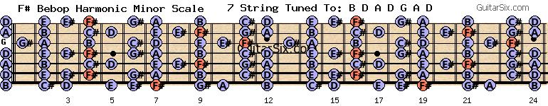 d-a-d-g-a-d f# bebop harmonic minor scale for guitar