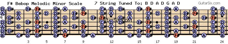 d-a-d-g-a-d f# bebop melodic minor scale for guitar