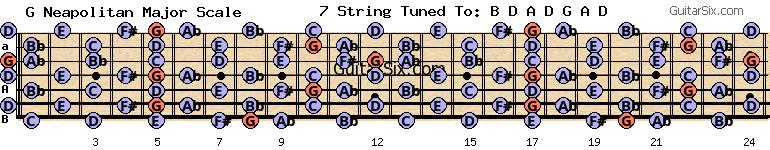 d-a-d-g-a-d g neapolitan major scale for guitar