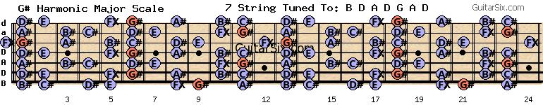 d-a-d-g-a-d g# harmonic major scale for guitar