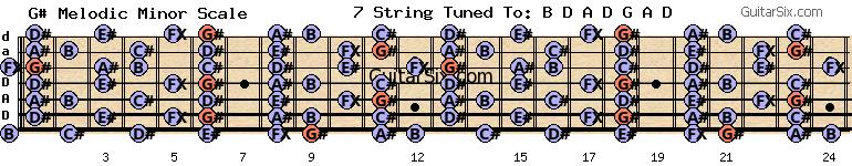 d-a-d-g-a-d g# melodic minor scale for guitar
