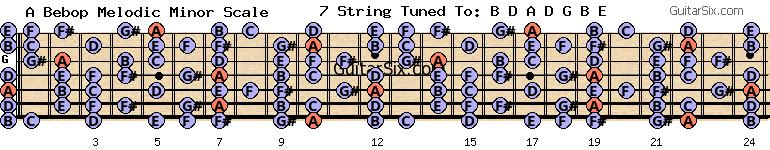 d-a-d-g-b-e a bebop melodic minor scale for guitar