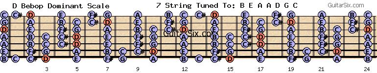 e-a-a-d-g-c d bebop dominant scale for guitar