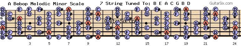 e-a-c-g-b-d a bebop melodic minor scale for guitar