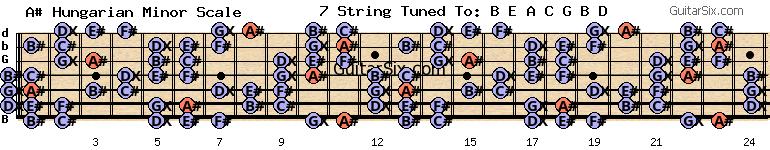 e-a-c-g-b-d a# hungarian minor scale for guitar