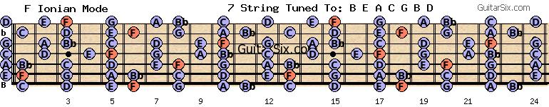 e-a-c-g-b-d f f ionian mode for guitar