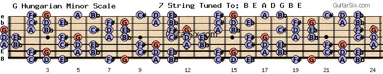 e-a-d-g-b-e g hungarian minor scale for guitar