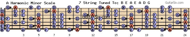e-a-e-a-d-g a harmonic minor scale for guitar