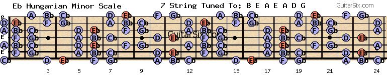 e-a-e-a-d-g eb hungarian minor scale for guitar