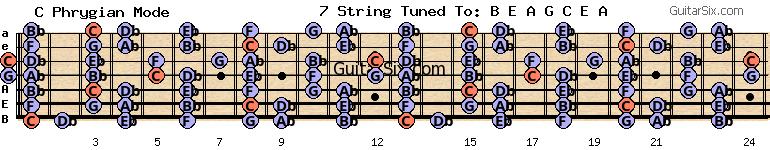 e-a-g-c-e-a ab c phrygian mode for guitar