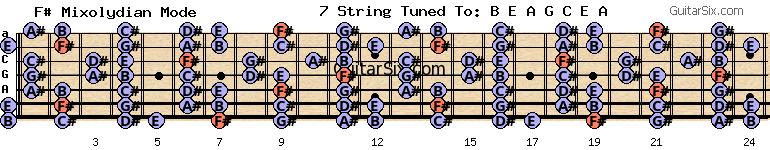 e-a-g-c-e-a b f# mixolydian mode for guitar