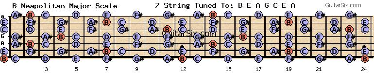 e-a-g-c-e-a b neapolitan major scale for guitar