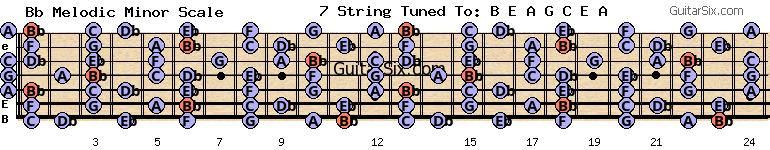 e-a-g-c-e-a bb melodic minor scale for guitar
