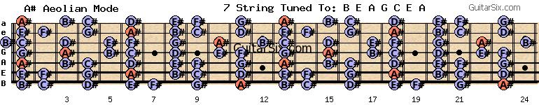 e-a-g-c-e-a c# a# aeolian mode for guitar