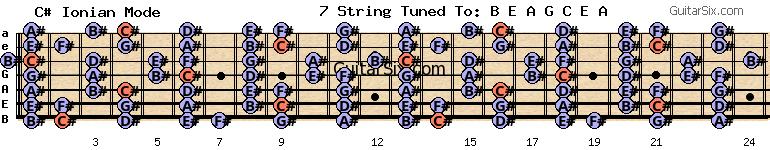 e-a-g-c-e-a c# c# ionian mode for guitar