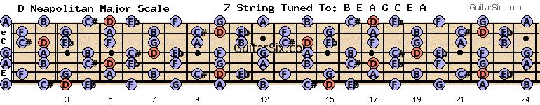 e-a-g-c-e-a d neapolitan major scale for guitar