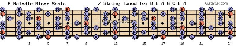 e-a-g-c-e-a e melodic minor scale for guitar
