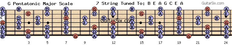e-a-g-c-e-a g pentatonic major scale for guitar