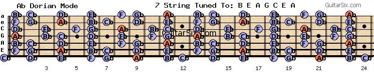 e-a-g-c-e-a gb ab dorian mode for guitar